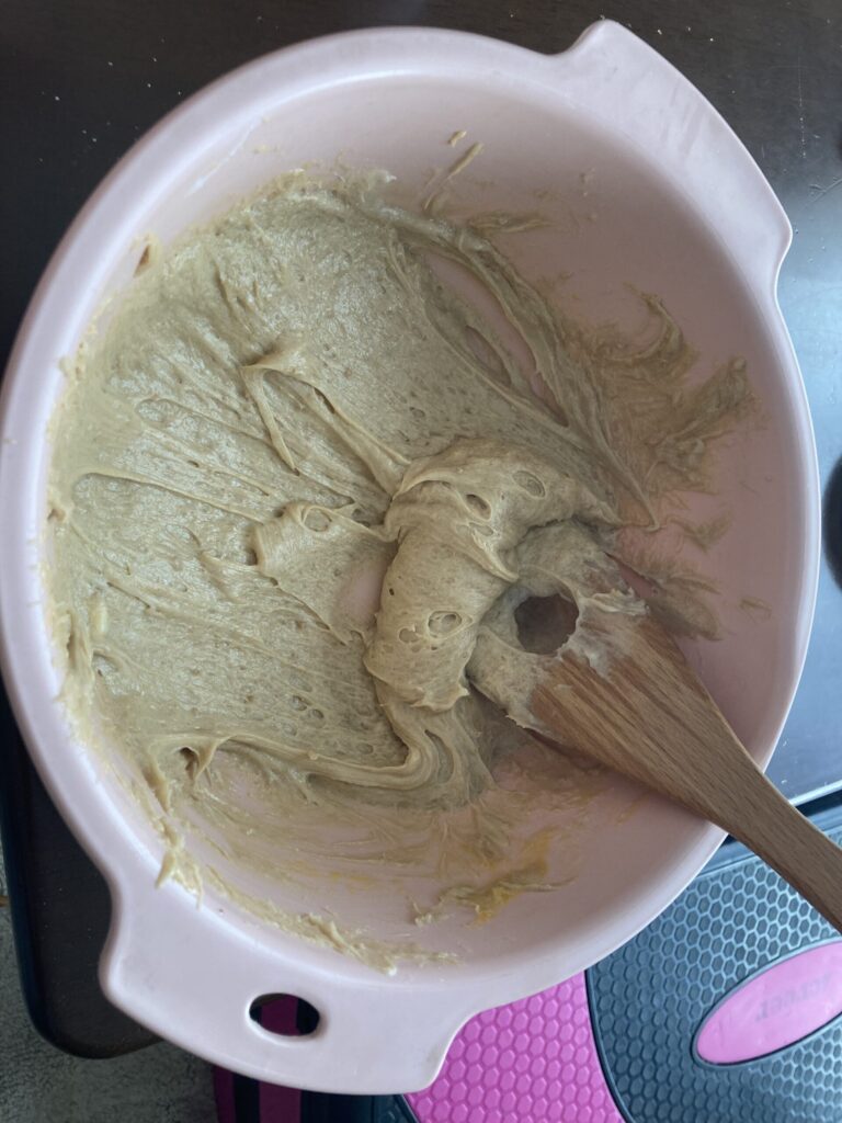 ④小麦粉を混ぜる 3回くらいに分けて混ぜる
